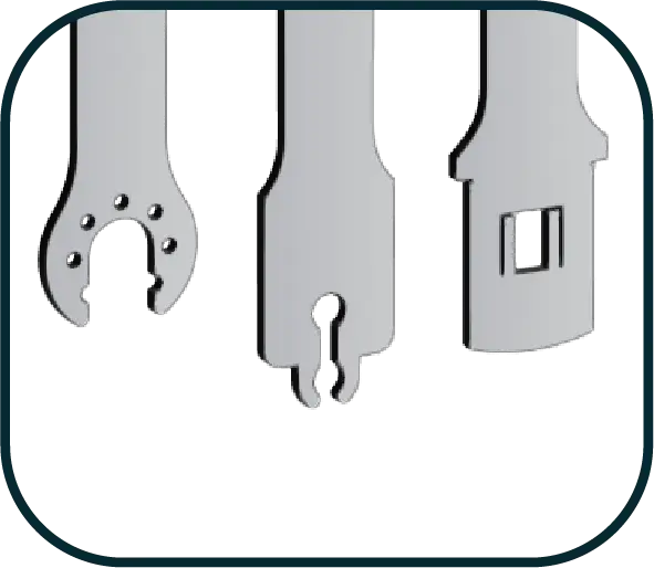 Saw blades for all bone cutting operations, compatible with all brands of surgical power tools.